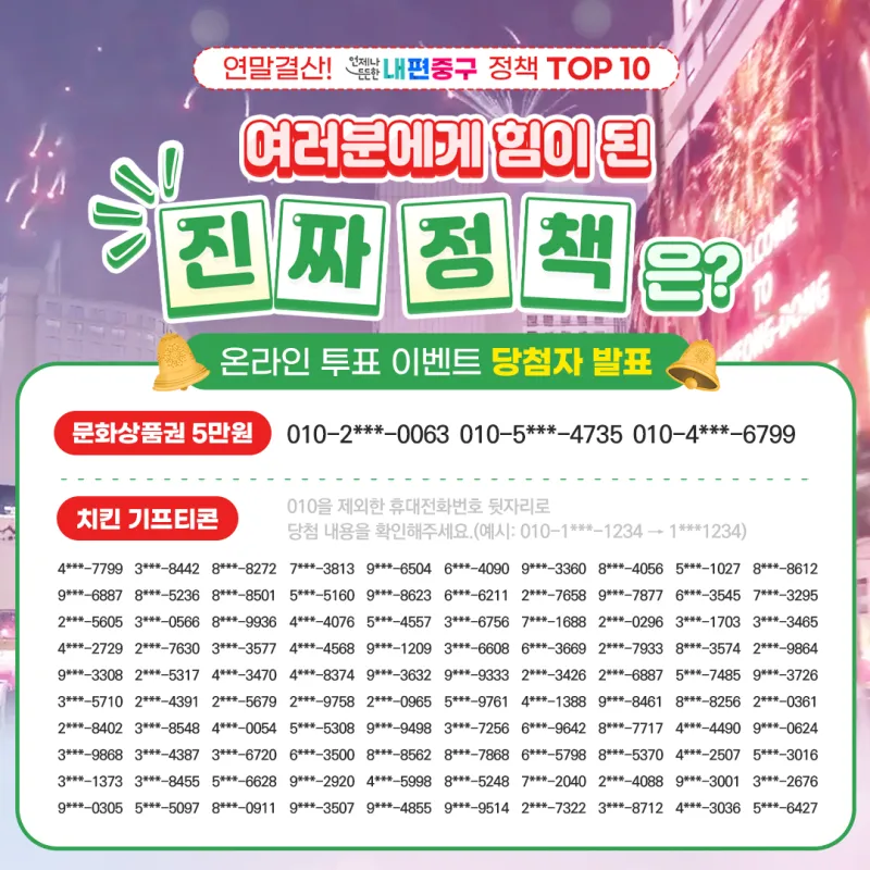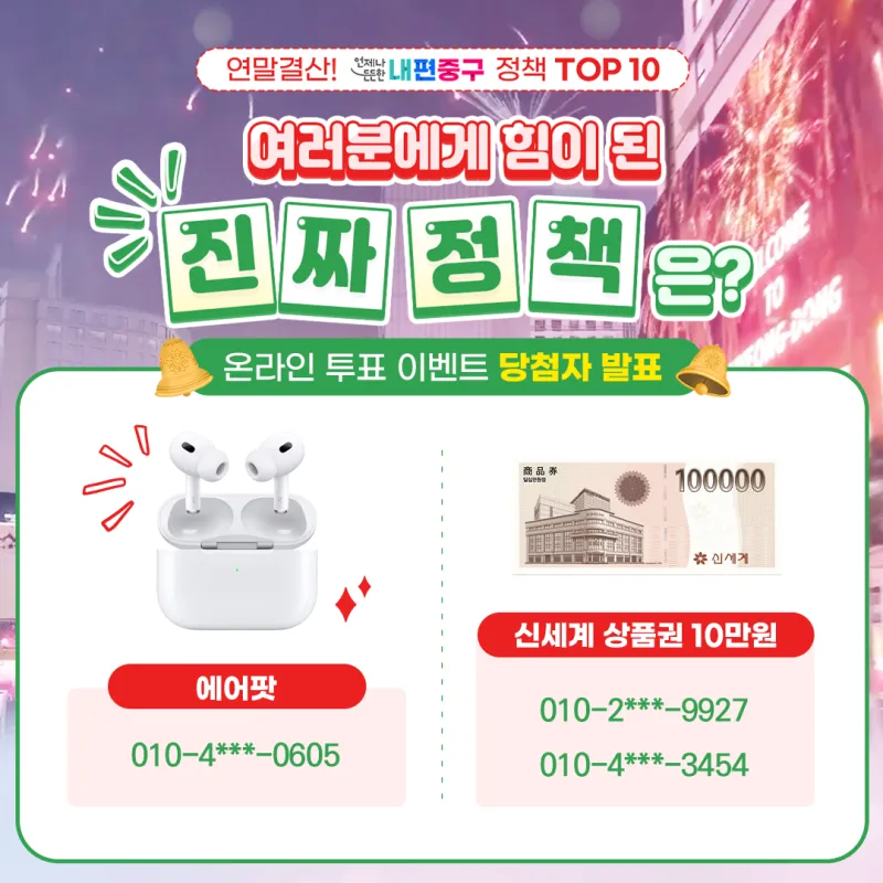 [당첨자 발표] “내편중구 정책 TOP 10” 여러분에게 힘이 된 진짜 정책을 뽑아주세요!