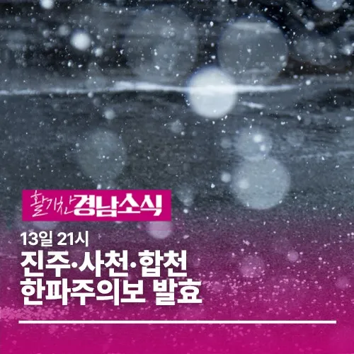 경남도 , 한파 대응체계 가동 … 취약계층 보호 강화 - 진주 · 사천 · 합천 13 일 21 시 한파주의보 발효 … 도민 건강 · 생활 안전 총력 경상남도는 13 일 21 시를 기해 진주 · 사천 · 합천 지역에 한파주의보가 예보됨에 따라 도민 피해 예방을 위한 선제 대응에 나선다고 밝혔다 . 기상청에 따르면 북서쪽에서 찬 공기가 유입되면서 기온이 크게 떨어지고 바람이 강해져 저체온증과 동상 등 한랭질환 발생 위험이 커질 것으로 예상된다 . 수도관 동파와 농 · 축산물 피해 , 난방기기 사용 증가에 따른 안전사고도 ...