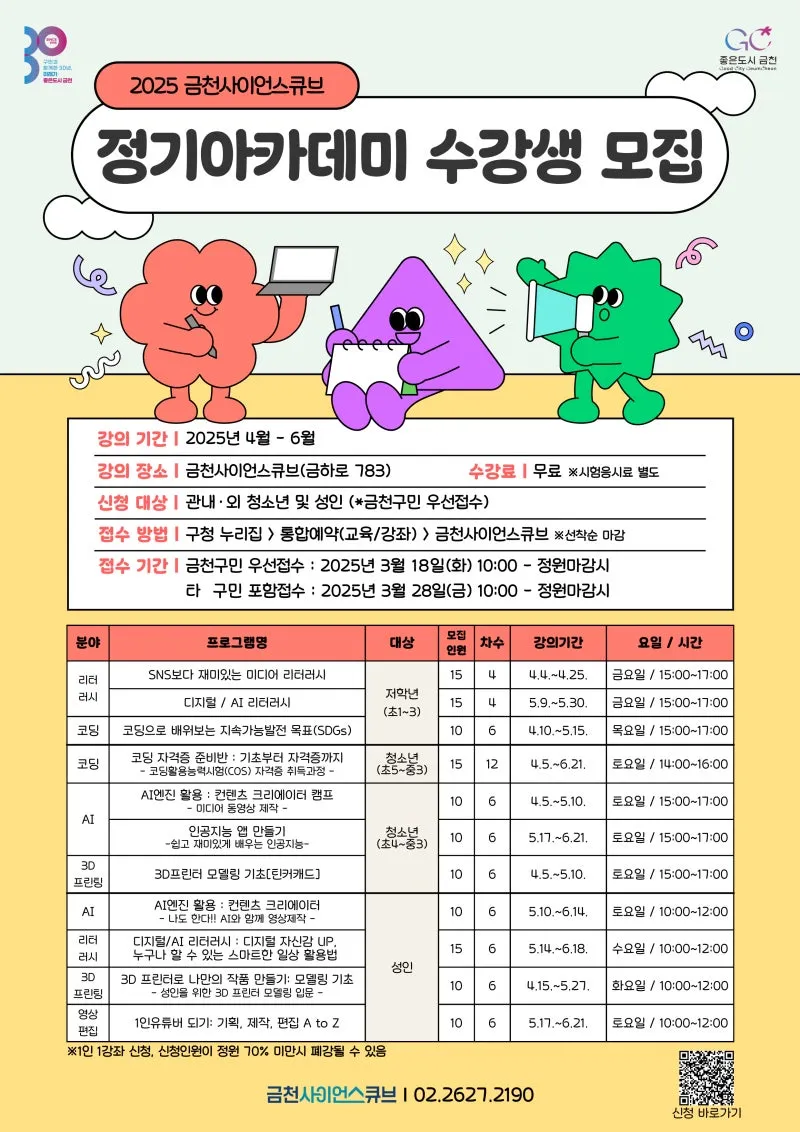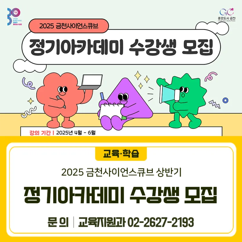 2025 금천사이언스큐브 정기아카데미 상반기 수강생 모집