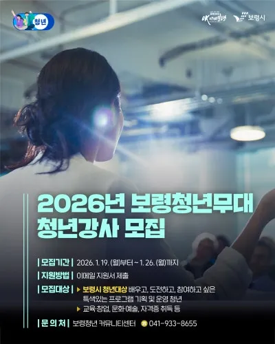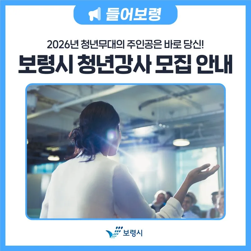 2026년 청년무대의 주인공은 바로 당신! 보령시 청년강사 모집 안내 ✨