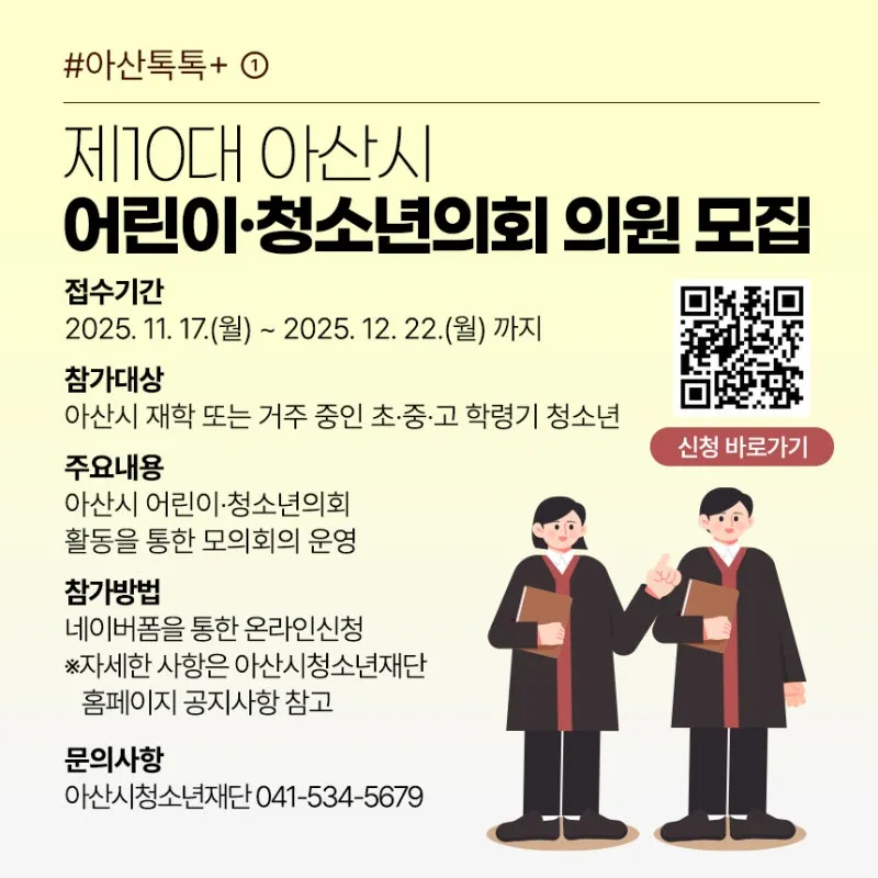 제10대 아산시 어린이·청소년의회 의원 모집