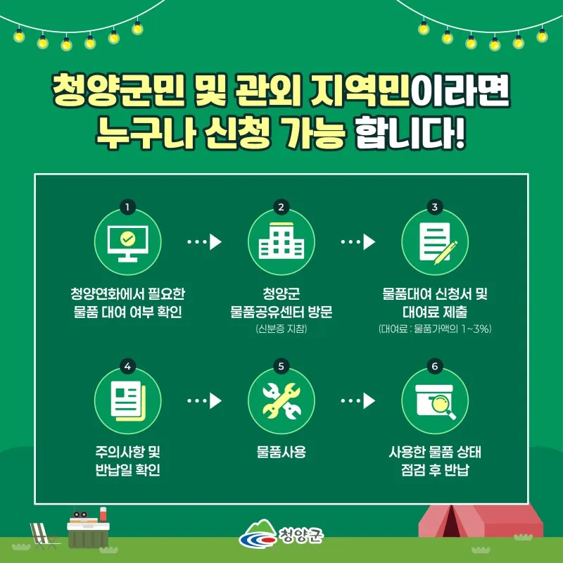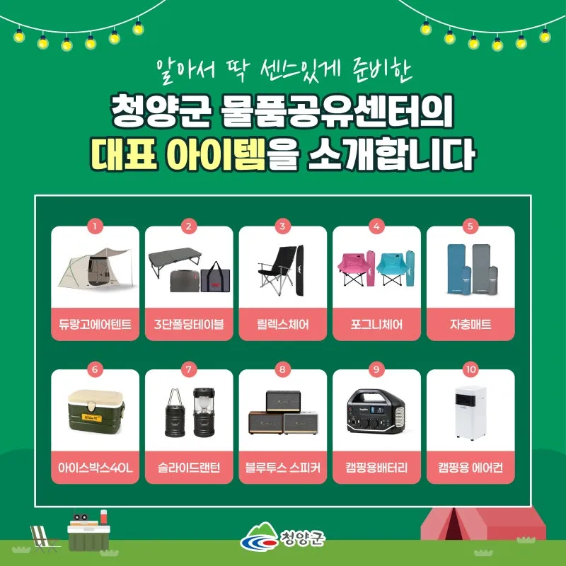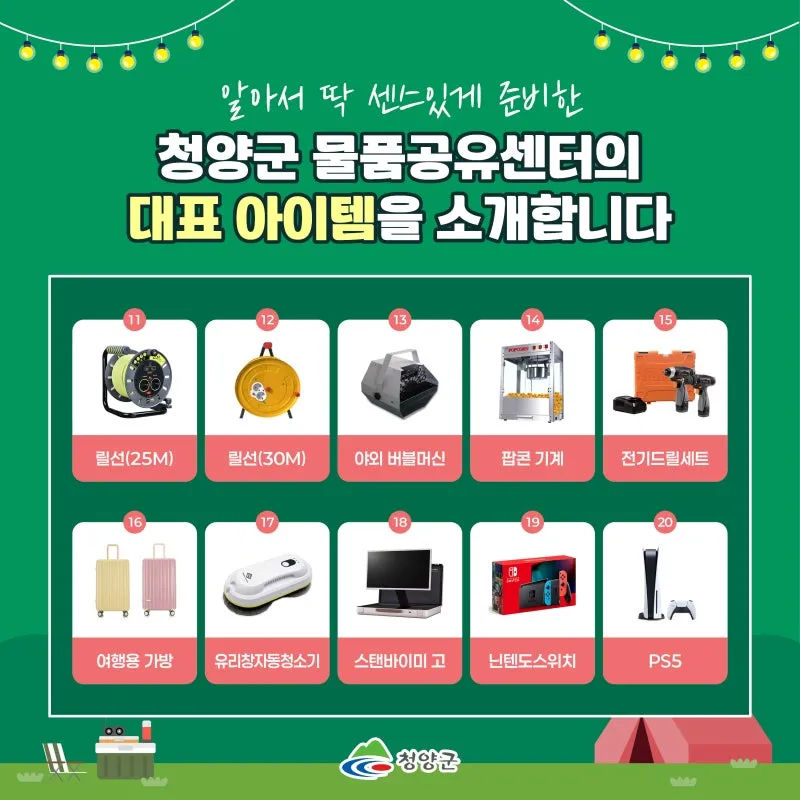 청양군 물품공유센터의 대표 아이템을 소개합니다