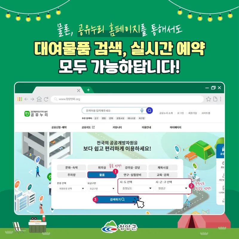 청양군이 보유한 물품을 언제 어디서든 편리하게!