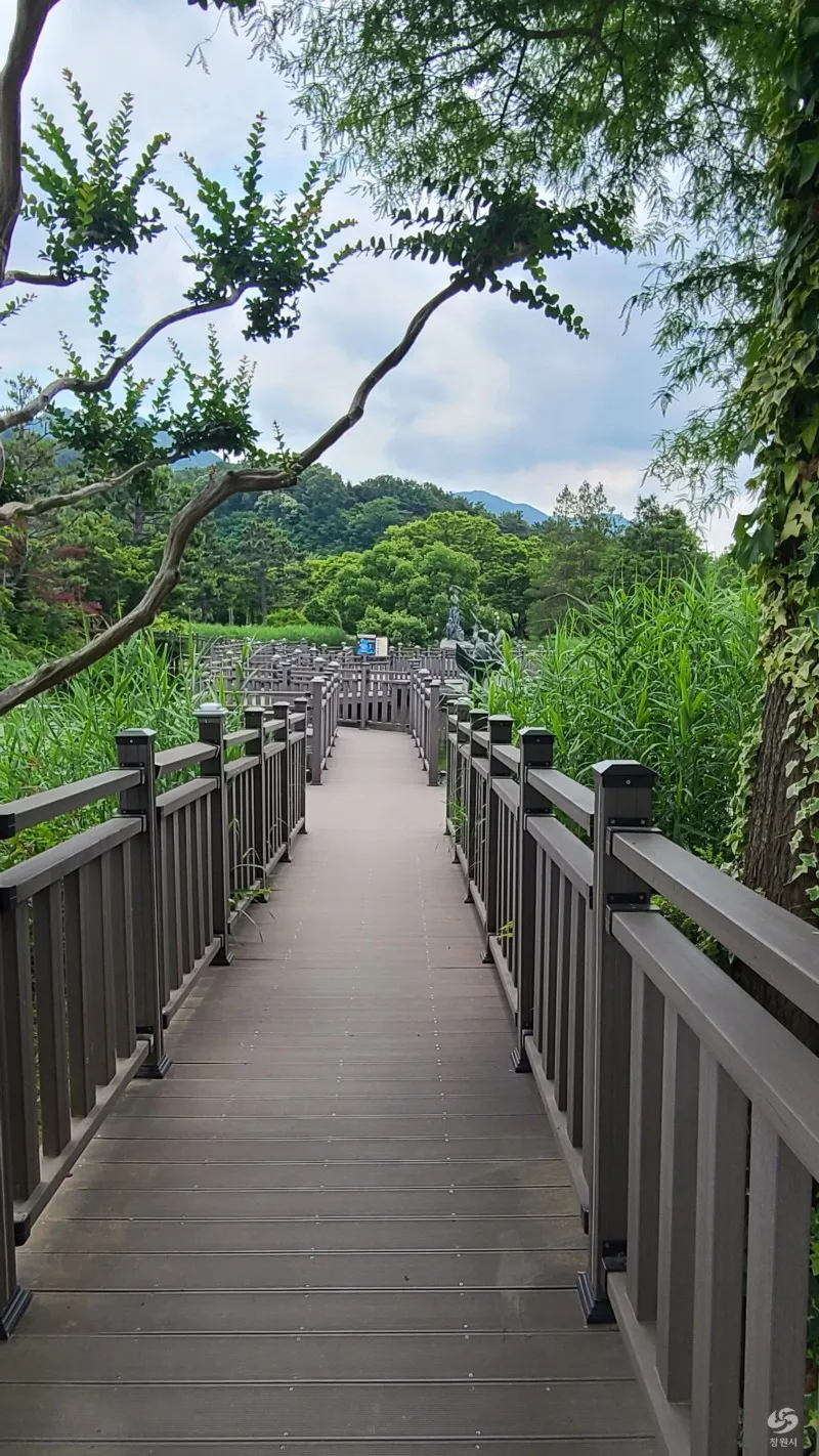 좀 더 걸어 들어가면 중앙에 넓은 광장 같은 나무데크가 있어서 사진 찍기에도 좋습니다. 도청 생태연못 안내도가 상세하게 적혀 있어서 한번쯤 읽어 보았습니다.