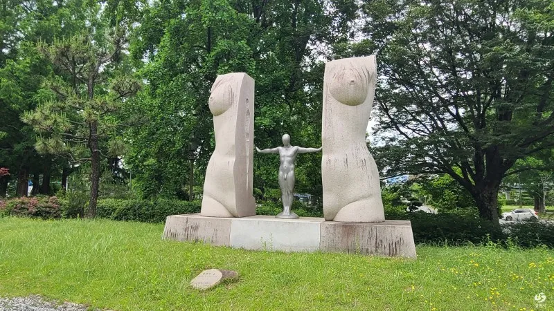 ‘추락하는 이카루스‘ 라는 제목의 조형물은 멋진 작품으로 자연과 잘 조화를 이루고 있는듯합니다.