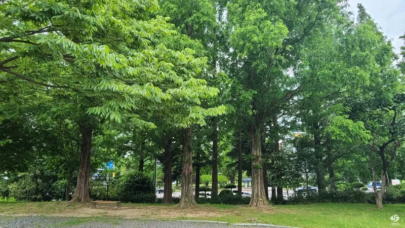 키다리 메타세콰이어와 편백같은 나무는 수종이 크기에 밖의 큰 도로의 차량마저도 보이지 않고 소음도 줄여주는 효과도 있습니다.