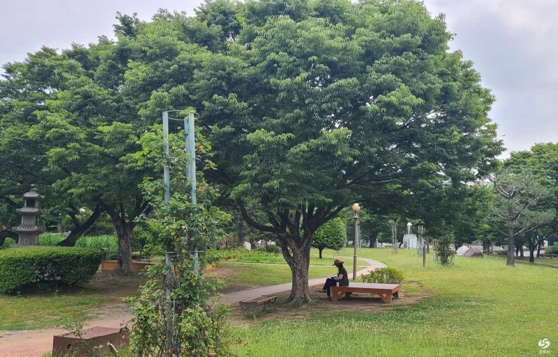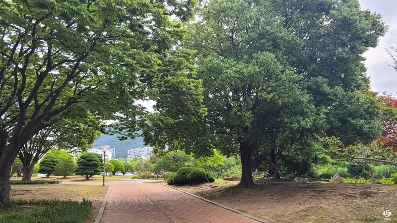 경남도청정원 안쪽으로 들어가 보았는데요, 생각보다 오래된 정원의 나무 조경이 아름드리 큰 나무로 성장하여 시원한 나무 그늘을 만들어 주고 있었습니다.