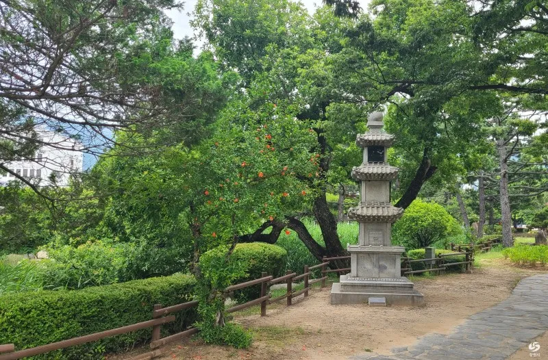 연못가 주변으로 삼층석탑이 있어서 전통미도 느낄 수 있습니다.