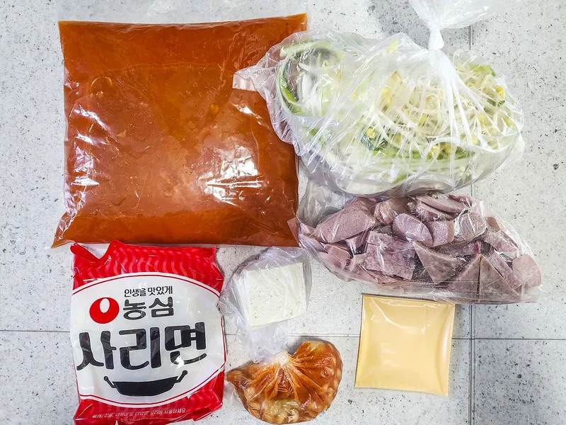 기본 재료는 들어가 있지만, 라면, 치즈, 콩사리,