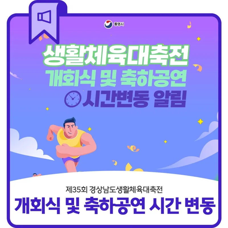 제35회 경상남도생활체육대축전 개회식 및 축하공연 시간 변동 안내