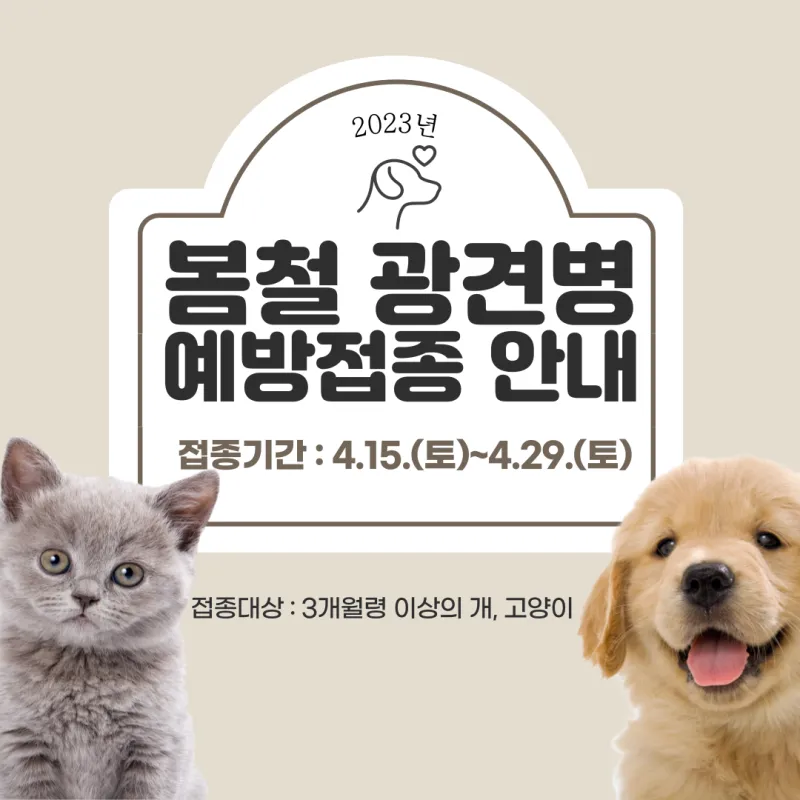 2023년 봄철 반려동물 광견병 예방접종 지원 사업을 실시합니다.