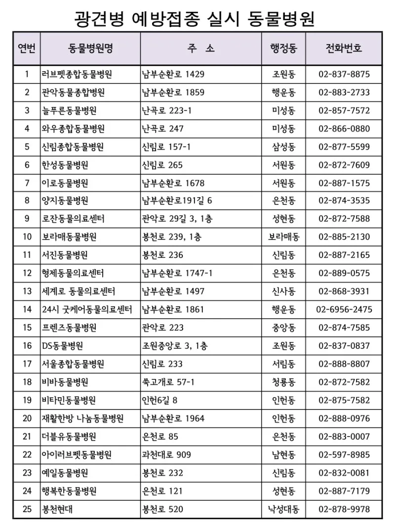 🐱 접종장소 : 관내 동물병원 25개소