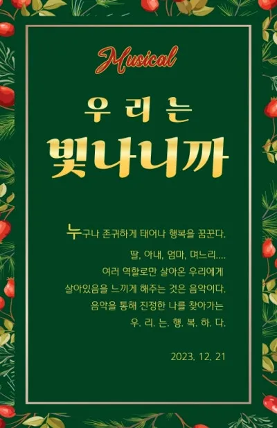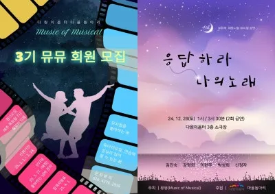 뮤지컬 <응답하라 나의 노래> 24. 12. 28. 토요일 1시, 3시 30분에 다원이음터에서 공연합니다.