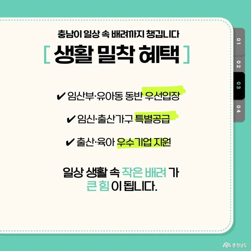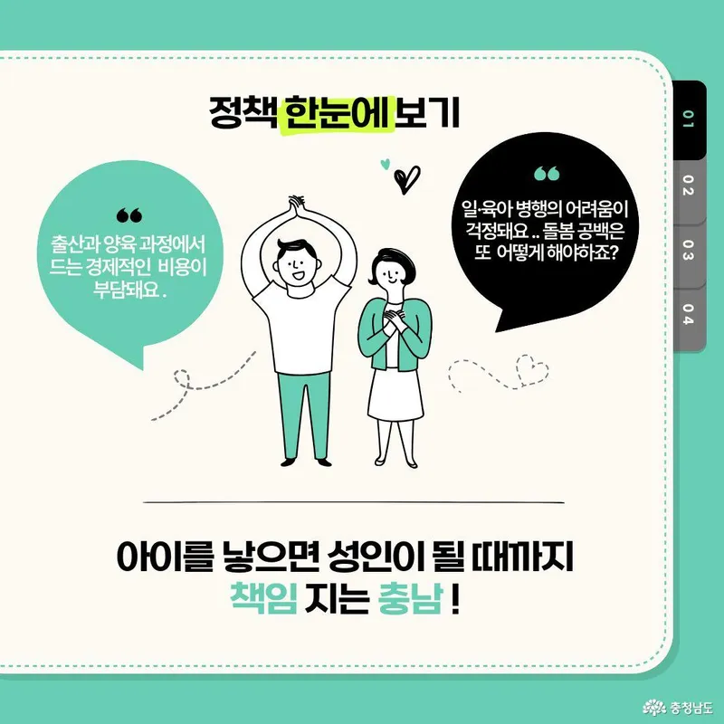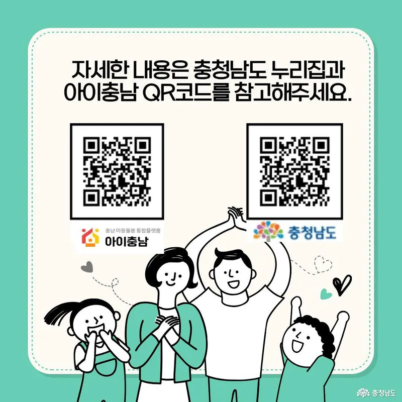 자세한 정책 내용과 신청방법은 '아이충남'과