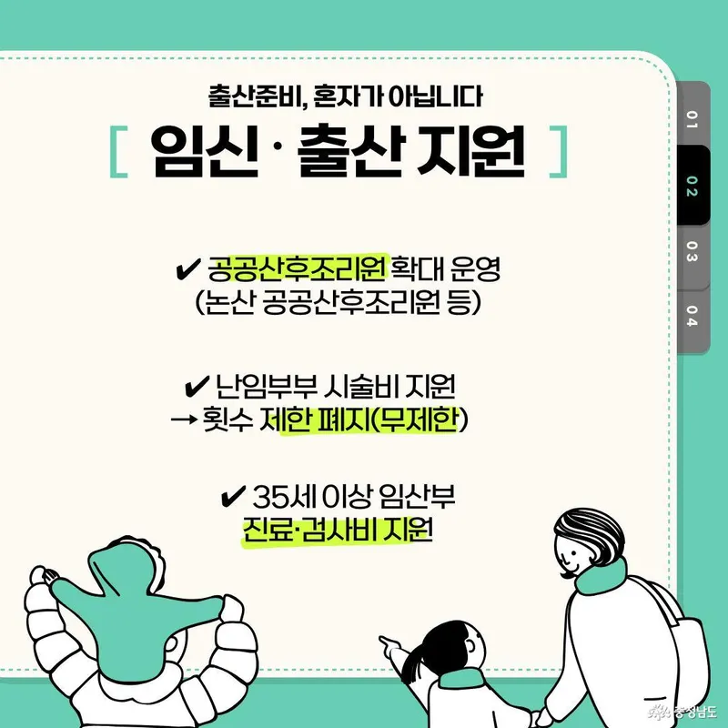 공공 산후 조리원 확대와 난임부부 시술비 지원으로 출산 준비를 돕습니다.