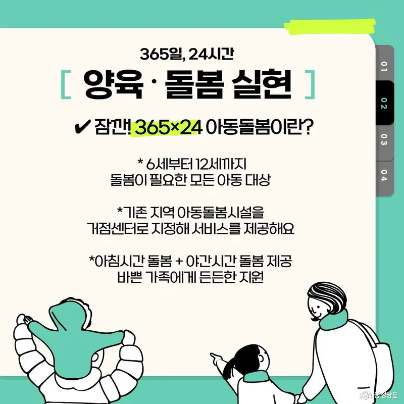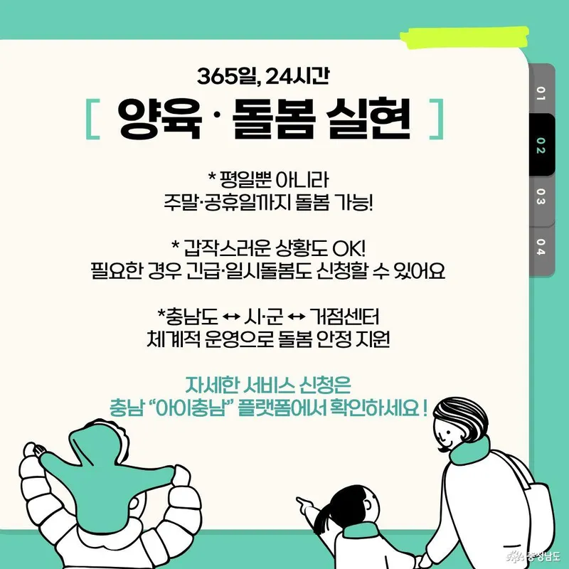 갑자기 바쁜 사정이 생긴 가정도 든든하게 충남이 돕습니다.