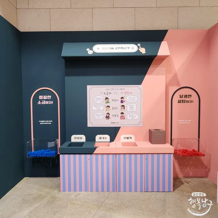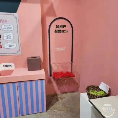 전시회장 밖으로 나오면 설문조사와 포토존이 마련되어 있어요. 음식에 설탕, 소금 어떤 걸 넣어먹는지 투표도 할 수 있어요.