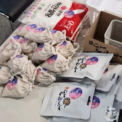 큐원설탕, 한주소금, 달고나, 액막이 소금 주머니 등 다양한 선물이 있으니 전시회도 보고 한번 참여해 보세요.