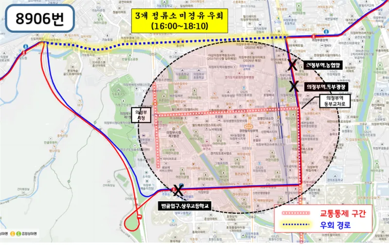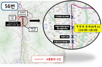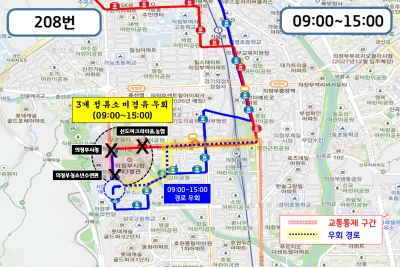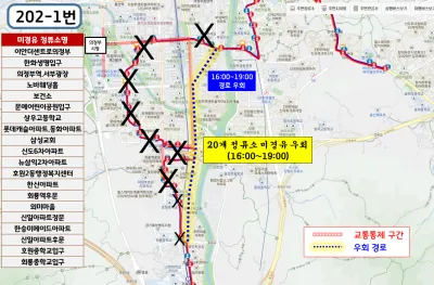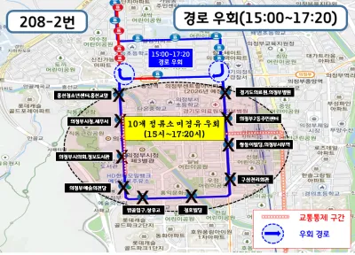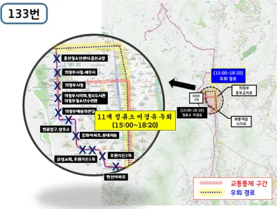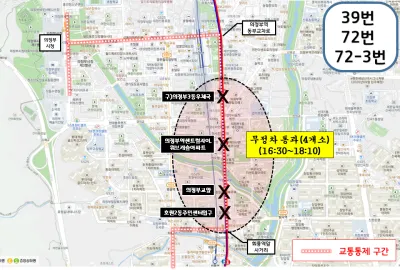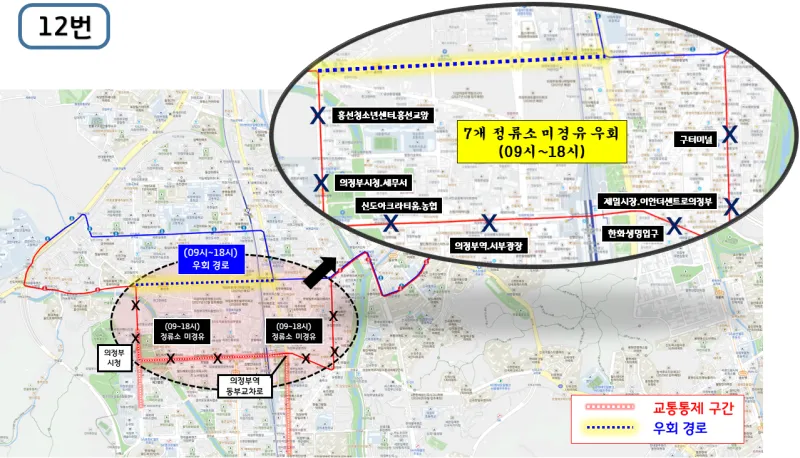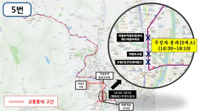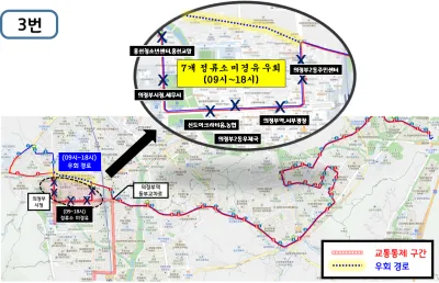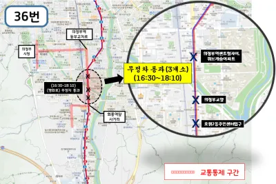 행사 당일 차량 혼잡이 예상되어 정류소 미운행 시간은 교통상황 및 배차간격에 따라 연장될 수 있음을 알려드립니다.