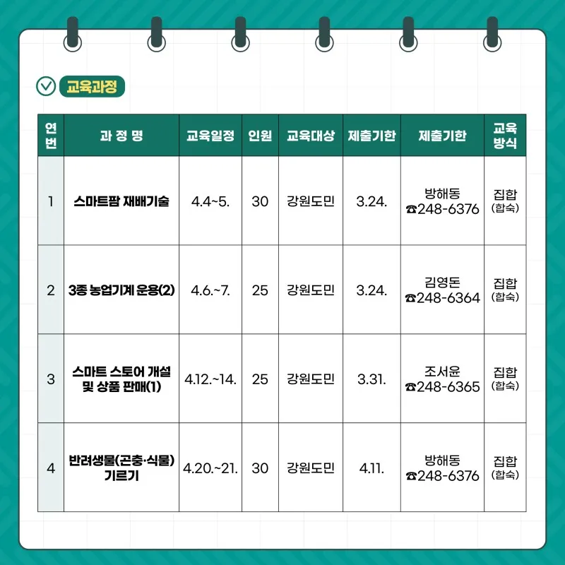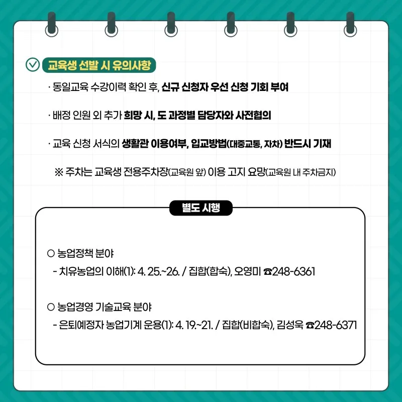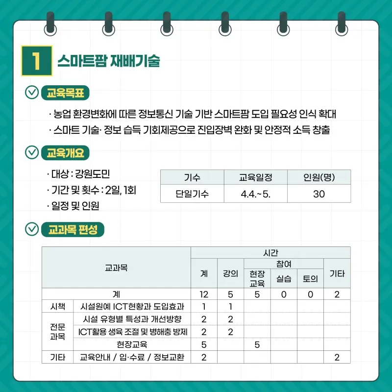 2023년 미래농업교육원(춘천) 교육훈련 계획에 따라