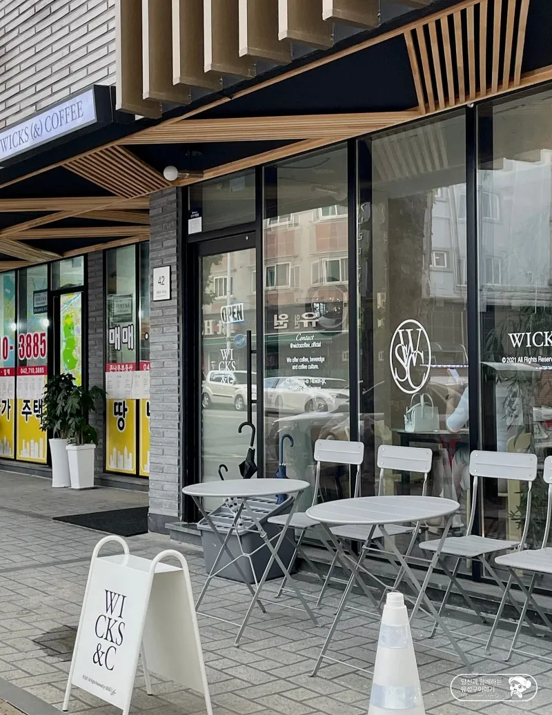 유성온천역에서 도보로 5분 걸어가면 도로 한편에서 만날 수 있는 윅스커피 WICKS COFFEE. 스페셜티 커피와 디저트를 만날 수 있는 봉명동 카페예요. 특히 드립커피가 맛있는 카페라 커피를 좋아하는 분들께도 추천하고 싶은 곳이에요.