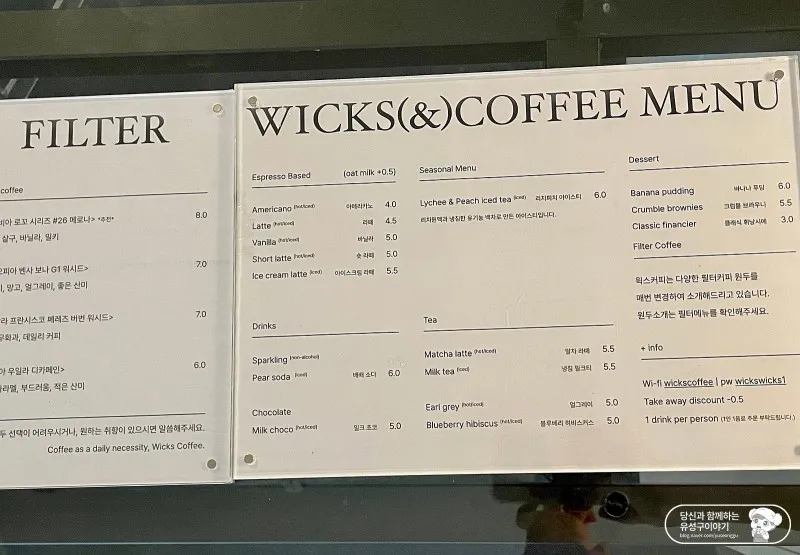 주변에도 수많은 카페가 있지만 맛있는 커피와 디저트, 차분한 분위기와 친절한 사장님. 그리고 반려견과 함께 할 수 있는 유성 봉명동 카페 윅스커피는 계속 방문하고 싶은 공간이랍니다. 참고로 한 달에 한 번씩 비정기 휴무가 있으니 방문 전에 인스타그램으로 확인하고 방문하시길 추천드려요.