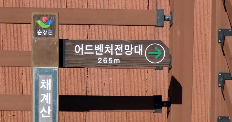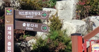 출렁다리 위 채계산 정상에 어드벤처 전망대 (560m)도 보입니다.