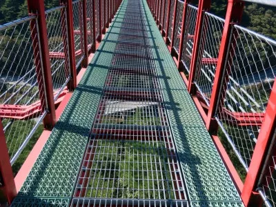 채계산 출렁다리가 높이와 길이로도 스릴이 있지만, 더욱더 스릴 만점인 것은 바닥 아래가 훤히 보여서 한 걸음 한 걸음 내 닫을 때마다 다리가 후덜덜.... 고소 공포증을 느끼고... 아래를 보면서 가는 것이 만만치 않습니다.