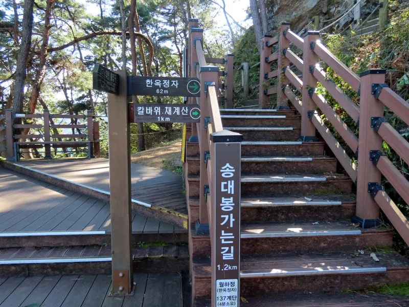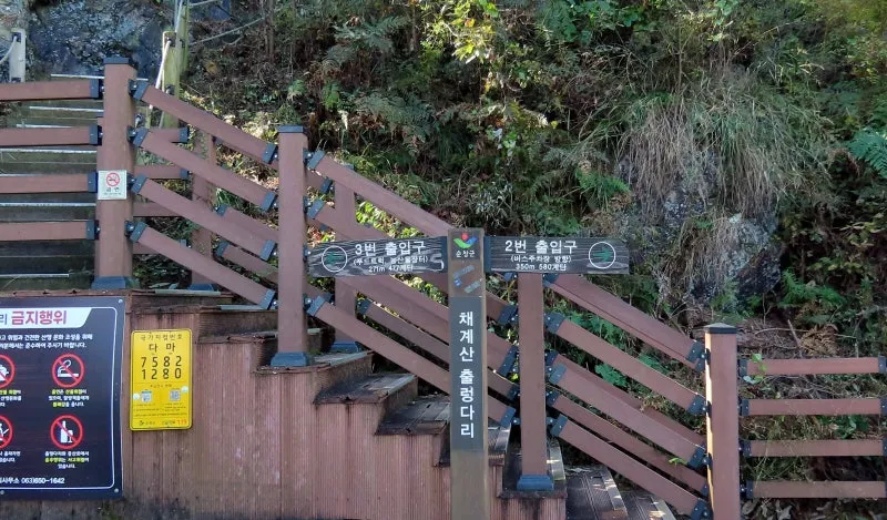 270m 다리를 건너 적성 체계산에 도착했습니다. 적성 체계산에서 동계 체계산 쪽을 바라본 다리입니다. 그리고 바로 하산하실 분들은 2번 출구나 3번 출구로 가시면 됩니다. 더 등산을 원하시는 분은 송대봉 방향으로 올라가시면 됩니다.