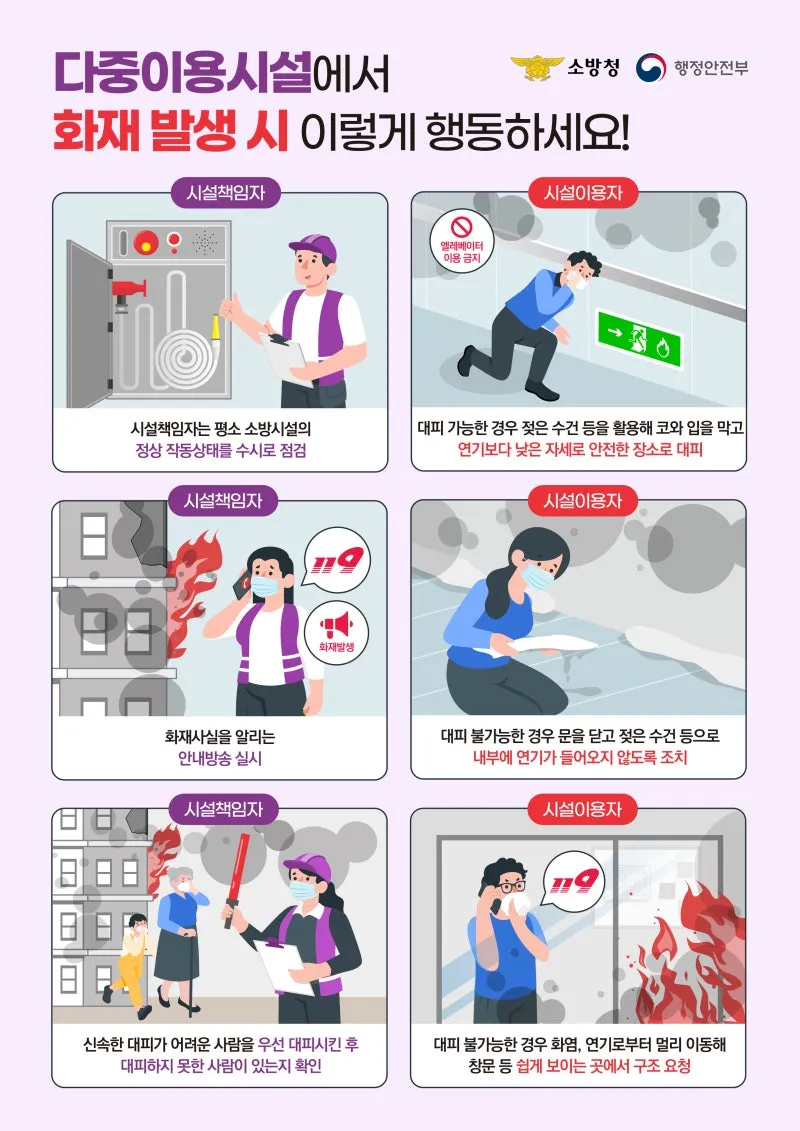 다중이용시설 화재, 대피요령 알아보고 생명을 지켜요!