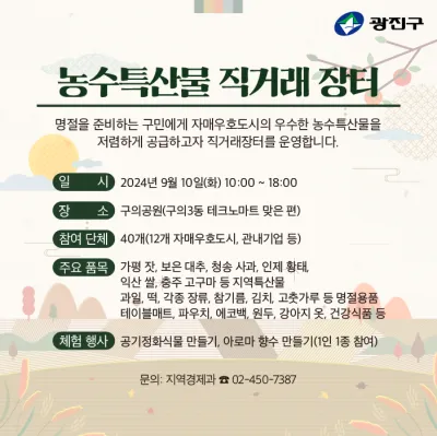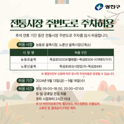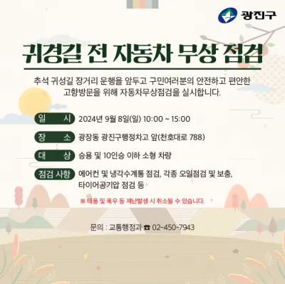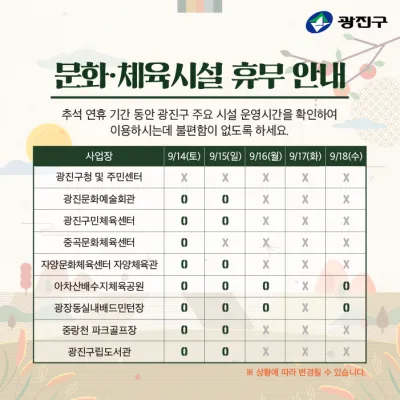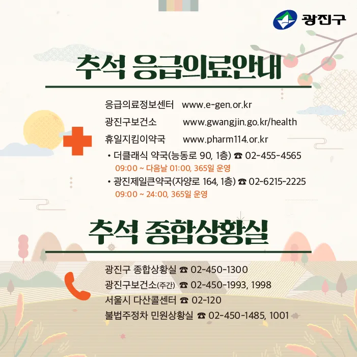 광진구에서 2024년 추석 연휴 생활 정보를 안내드립니다.