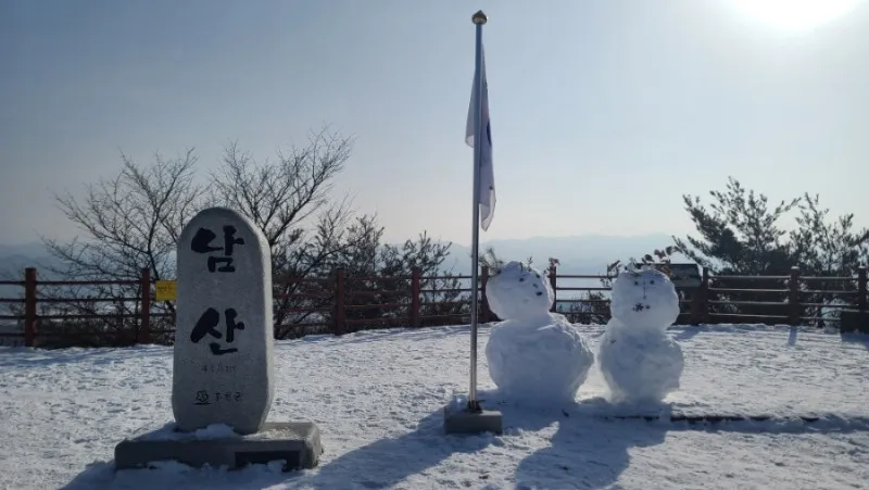 눈사람 부부가 남산의 정상을 태극기