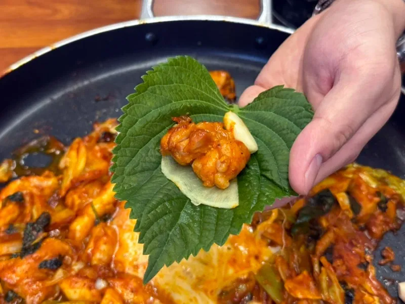 신선한 채소(양배추, 깻잎, 양파)와 함께 볶아내서 씹는 맛 풍성하고,