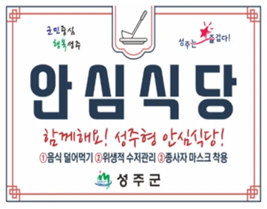 #성주 #성주군 #성주군청 #성주는즐겁다 #성주군보건소 #군민중심행복성주 #성주형안심식당 #안심식당 #성주안심식당 #성주군안심식당 #성주식당 #성주군보건소식품공중위생팀 #안심식당5대실천과제
