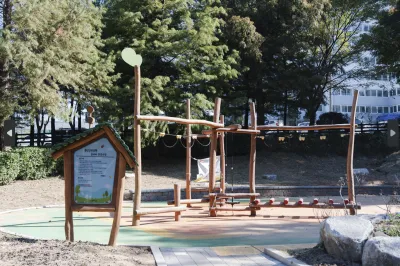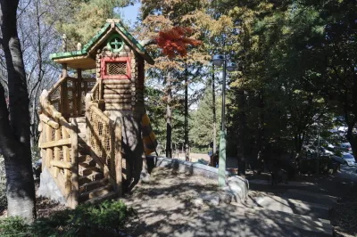 또 한쪽에는 나무로 지어진 아기자기한 놀이공간이 숲과 어우러져,