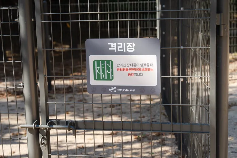 보호자는 놀이터 내에서 반려견을 풀어주기 전에 모든 입구가 닫혀 있는지 확인하고, 항상 목줄 또는 가슴줄을 소지하셔야 합니다.