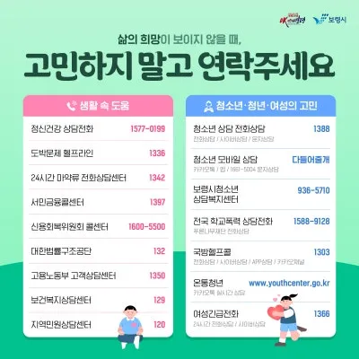 삶의 희망이 보이지 않을 때, 고민하지 말고 연락주세요