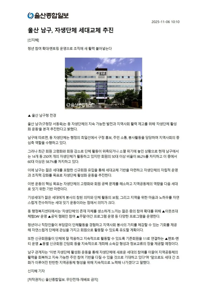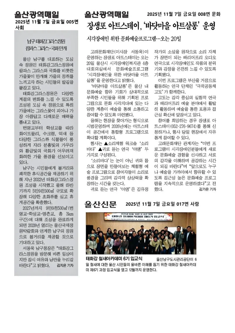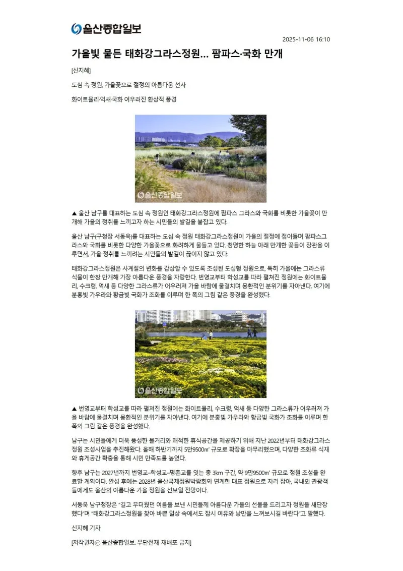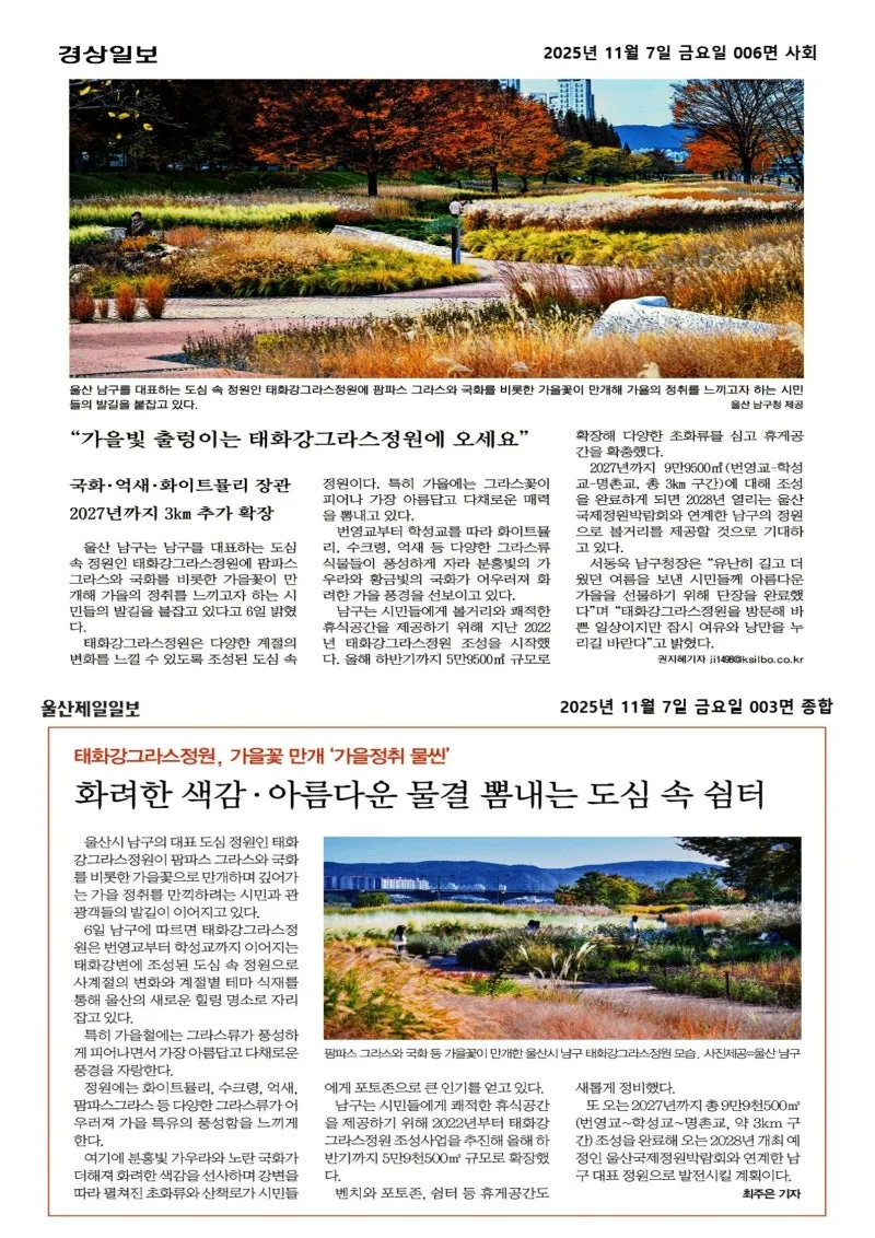 {"title":"[행복남구 오늘의신문] 🥮가을빛 출렁이는 태화강 그라스정원으로 오세요🍂 (11월 7일 금요일)","source":"https://blog.naver.com/ulsan-namgu/224067651073","blogName":"울산광역시..","domainIdOrBlogId":"ulsan-namgu","nicknameOrBlogId":"울산광역시남구청","logNo":224067651073,"smartEditorVersion":4,"blogDisplay":false,"meDisplay":true,"cafeDisplay":false,"lineDisplay":true,"outsideDisplay":false}