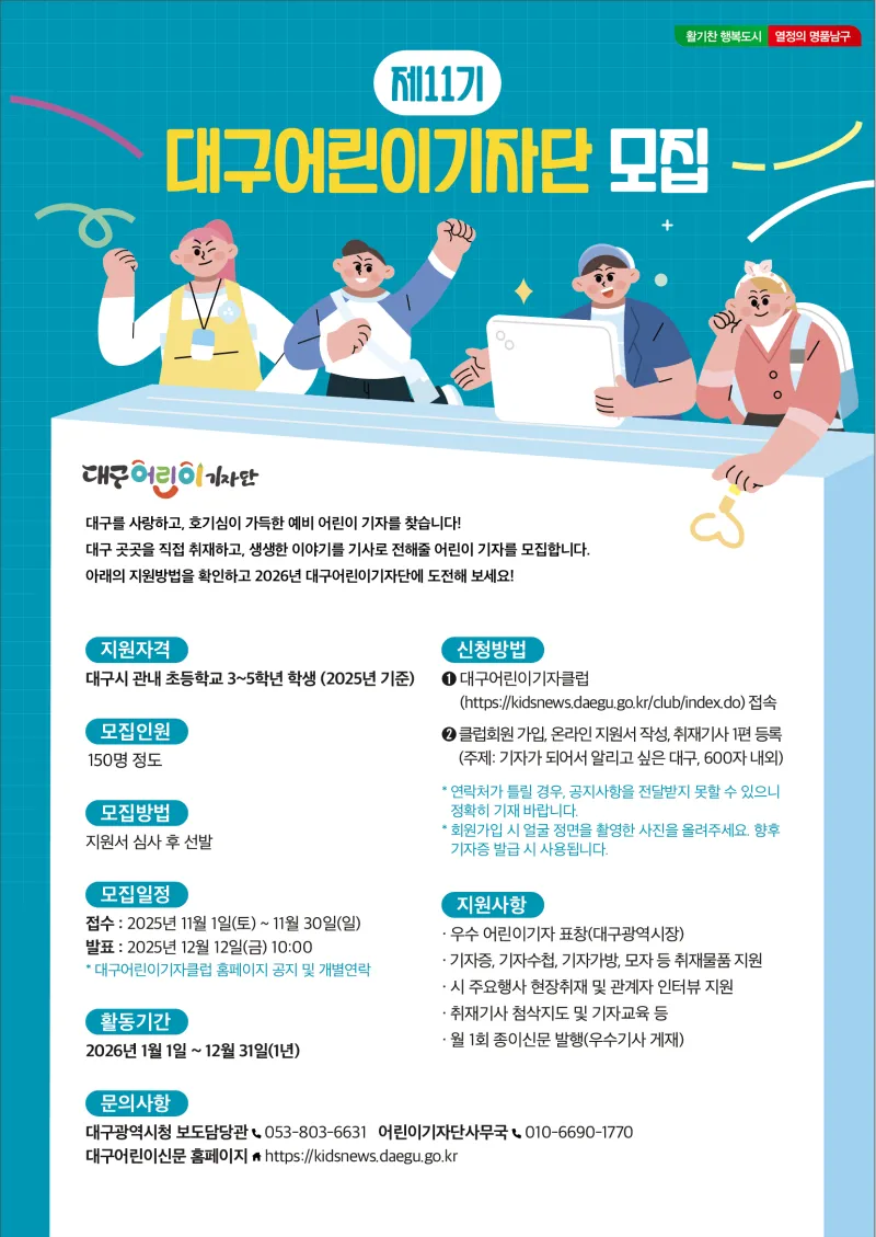 “대구어린이기자단” 11기 모집이 시작됩니다!