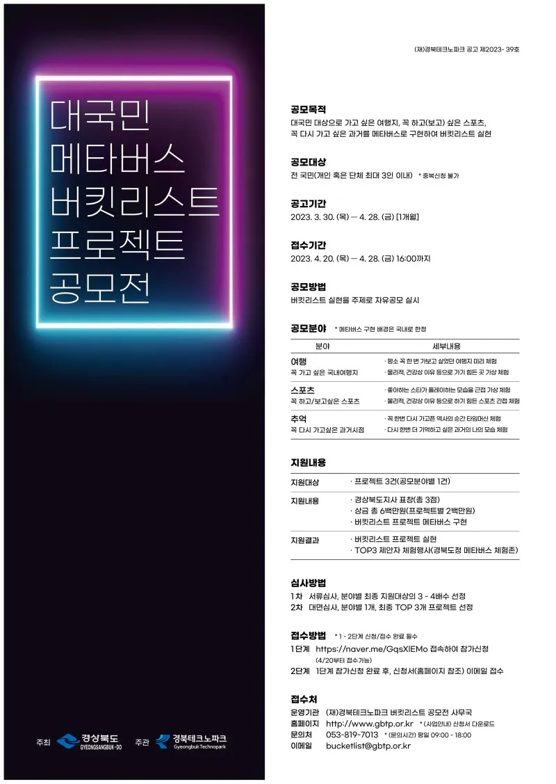 경북, 버킷리스트를 메타버스로 구현하는 공모전 소식!