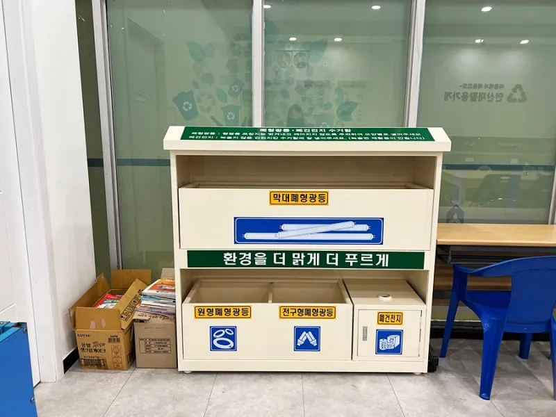철 캔, 건전지, 형광등 등을 받아주세요.
