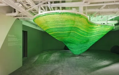 ‘관계와 연결’을 주제로 형광색 실을 활용해