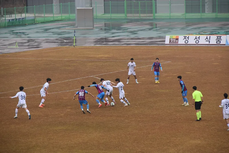경기 내내 비가 계속 내려 쉽지 않은 경기가 계속되었고, 전반전이 종료되었습니다.