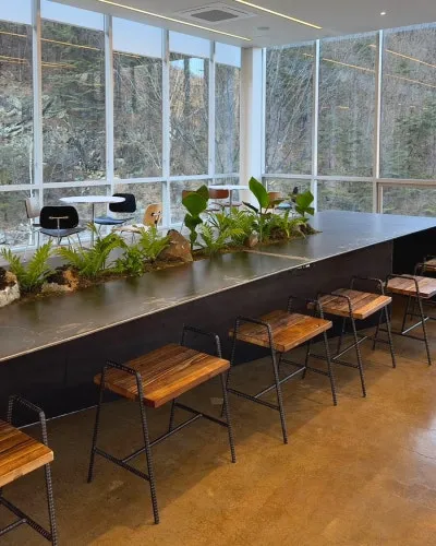이곳은 통 유리창으로 시원하게 꾸며진 인테리어는 물론
