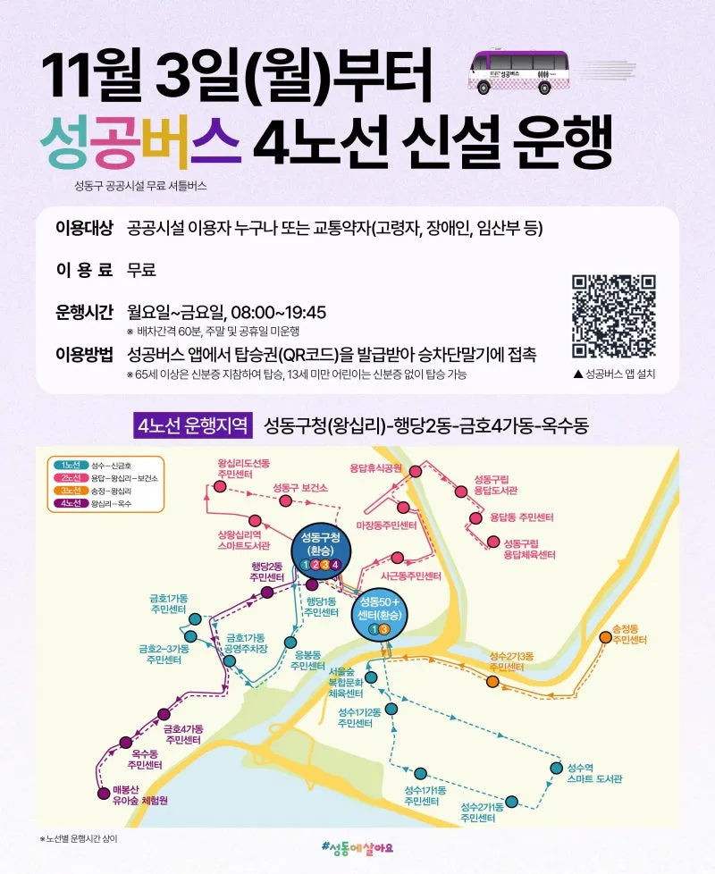 11월 3일(월)부터 성공버스 4노선 신설 운행
