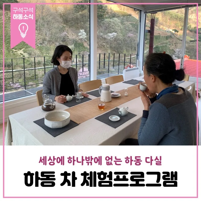 ‘세상에 하나밖에 없는 하동 다실’은 하동 속 아름다운 다실에서 차를 즐기며 이야기를 나눌 수 있는 프로그램으로, 지친 일상에서 벗어나 삶의 휴식을 느낄 수 있는 좋은 기회입니다.