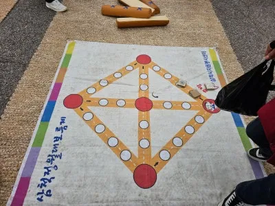 민속놀이 대회장 안에서 한참인 경기가 있었으니 바로 윷놀이 입니다.