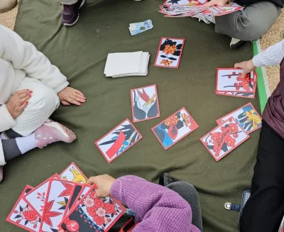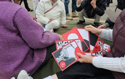 대형 화투장을 들고 장난스레 화투놀이를 즐기는 어른들의 풍경도 보였는데