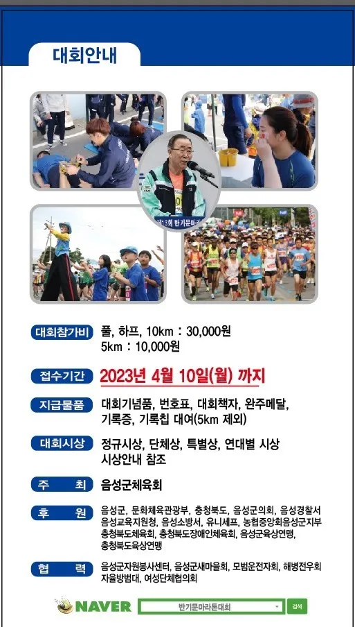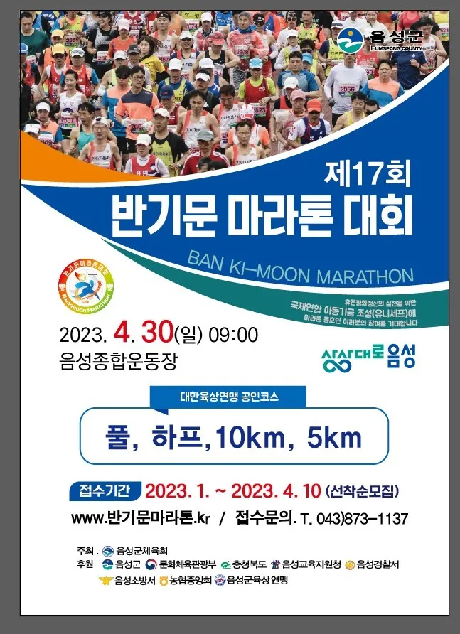 #충북 #음성군 #반기문마라톤대회 #마라톤 #음성군체육회 #4월_10일까지 #접수 #신청 #단체신청 #육상