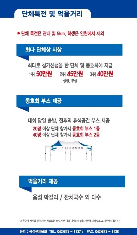 기타 대회 안내 및 시상, 단체특전 및 먹을거리는 아래 리플릿을 참조해주세요!